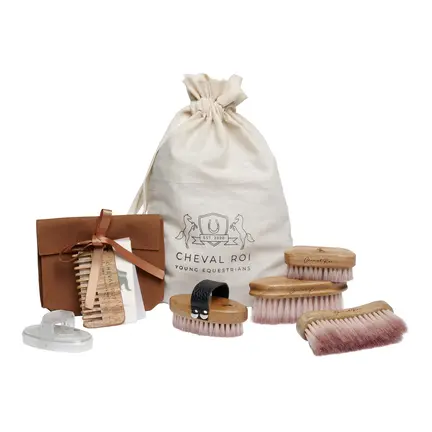 A complete set of beautiful brushes in acacia wood and soft rose bristles  for the daily care routine.
